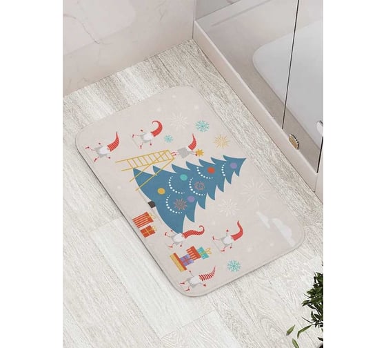 Противоскользящий коврик для ванной комнаты и туалета JOYARTY "Гномы украшают елку" 52x77 см bath_119570