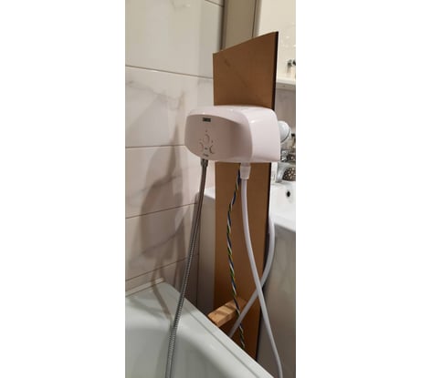 Итак, если у вас отключают воду в доме каждое лето, то покупаете эту дешевую китайскую поделку (да-да), и подключаете на вход обычную холодную воду (через тройник, шаровый кран и гибкую подводку). На выходе у нагревателя тоже 1/2", так что можно не подключать душ и всю эту ерунду из комплекта, а подключить выход гибкой подводкой к трубе горячей воды, также через тройник и кран. Оба крана открываете, а вводной кран горячей воды закрываете (о том что горячую воду дали - вы узнаете по горячему полотенцесушителю). И подключаете изделие хорошим толстым кабелем - ВВГ 3x2.5. Заземление обязательно (или зануление). В результате, вы получаете ТЕПЛУЮ воду. Режим I - по-моему бесполезен, режим II - "лучше чем совсем холодная" (помыть руки, почистить зубы), режим III (надо ухитриться и нажать кнопки I и II одновременно) - это реально теплая вода а если тонкой струйкой, то даже горячая. При работе нагрева горят синие индикаторы, кнопка "питание" - это "выключить". Режим III далеко не любая проводка выдержит, надо чтобы везде был такой толстый кабель, иначе соединения будут греться и может что-то поплавится или подгореть. Ну а реально горячую воду у него сделать не хватит мощности (и отсюда ясно, что еще менее мощные модели - на 3 кВт - вообще бесполезны, это только улиток или ящериц купать))) После того как помылись\постирали - выключаете водонагреватель (хотя нагрев и сам отключается, когда не идет вода, но на это не стоит рассчитывать). Еще бывает момент, что его включаешь, а индикаторы не горят, то есть нагрев включается не сразу, это пугает, "сломался что ли". В целом качество дешевое пластиковое. Сверху в задней стенке есть отверстие под еще один шуруп, но в крышке такого отверстия нет и самого шурупа нет, а без этого крышка не держится толком, пришлось колхозно вкрутить саморез. Но в целом годная вещь. А когда воду дадут - перекрываете 2 крана которые поставили перед подводками, и пользуетесь нормальной горячей водой.