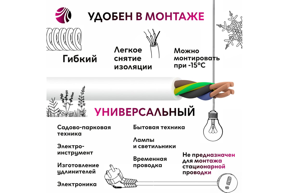 Провод ПВС Ореолсо скрученными жилами, с ПВХ изоляцией, с ПВХ оболочкой на напряжение до 380В для систем 380/660В предназначен для электроприборов и электроинструмента по уходу за жилищем и его ремонту, стиральных машин, холодильников, средств малой механизации для садоводства и огородничества, и для изготовления шнуров удлинительных.