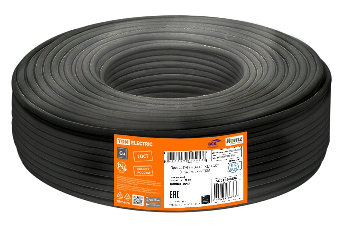 Расходные материалы для провода TDM ELECTRIC ПуГВнг(А)-LS 1x2,5 ГОСТ (100м), черный SQ0124-0836