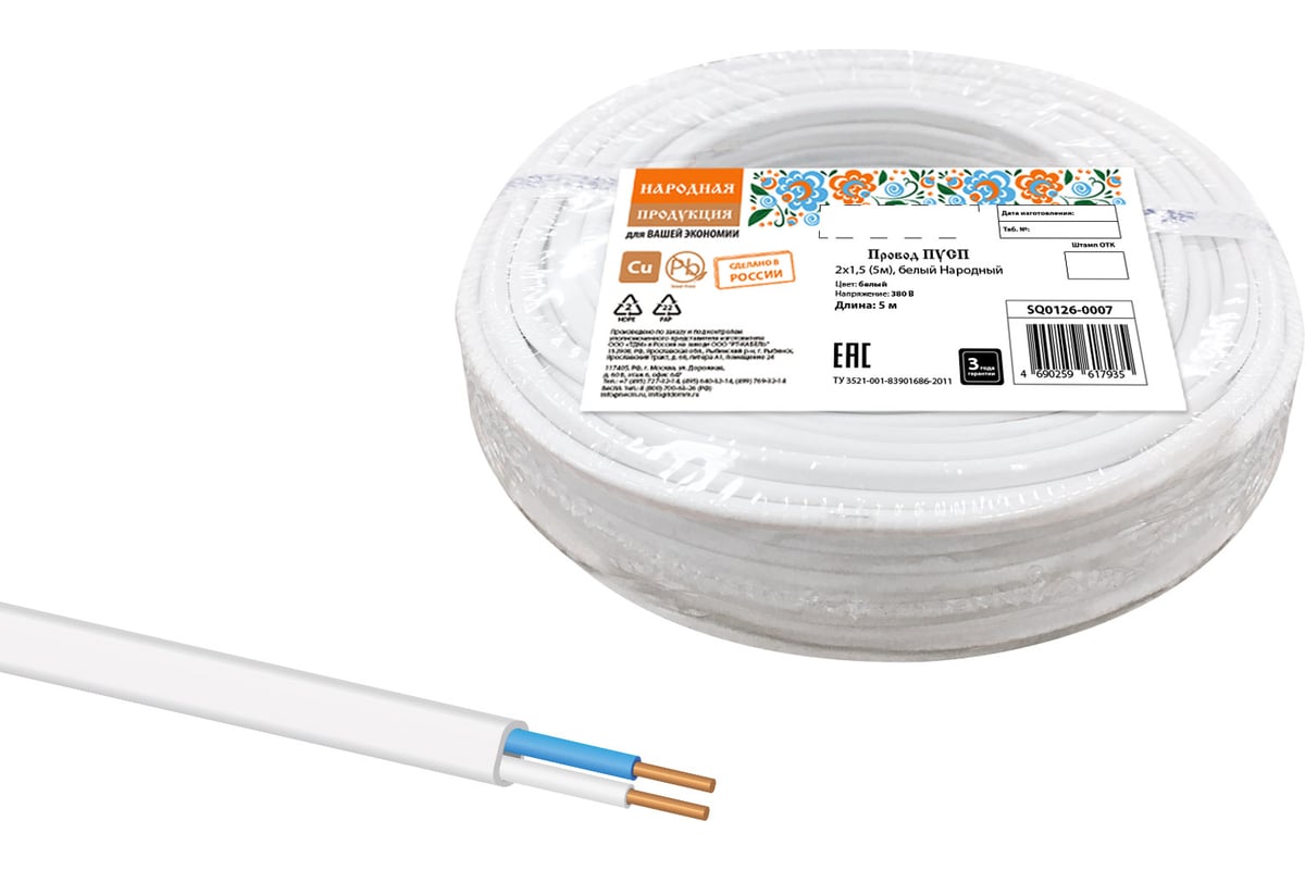 Вопросы и ответы о проводе TDM ELECTRIC Народный ПУСП 2x1,5 5м, белый SQ0126-0007