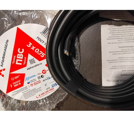 Вопросы и ответы о проводе АЛЬФАКАБЕЛЬ ПВС 3х0,75 мм черный ГОСТ 5 м 05144