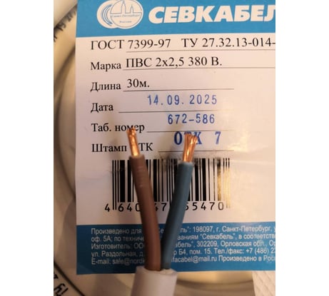 Качественный кабель российского производства, медные жилы, сечение соответствует.