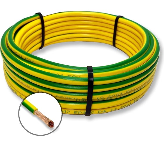 Провод установочный ПРОВОДНИК ПуГПнг(A)-HF 1х6 мм2, зелено-желтый, 100м BOZ341571L100