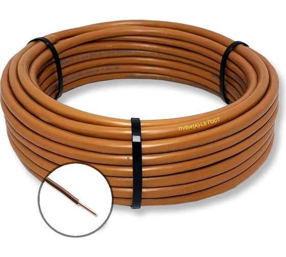 Провод установочный ПРОВОДНИК ПуВнг(A)-LS 1x6 мм2, Коричневый, 50м OZ251010L50