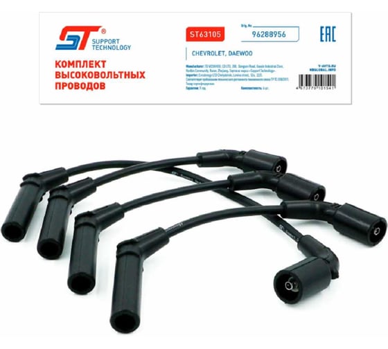 Высоковольтные провода ST Support Technology (арт. ST63105) предназначены для 4-цилиндровых двигателей SOHC объемом 1.0–1.2 л, устанавливаемых на компактные автомобили концерна GM.
