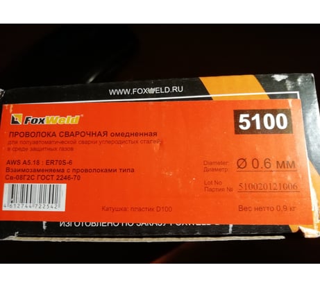 Отзывы о проволоке омедненной ER49-1 (0.9 кг; 0.6 мм; D100; ан. Св08Г2С) Foxweld 5100