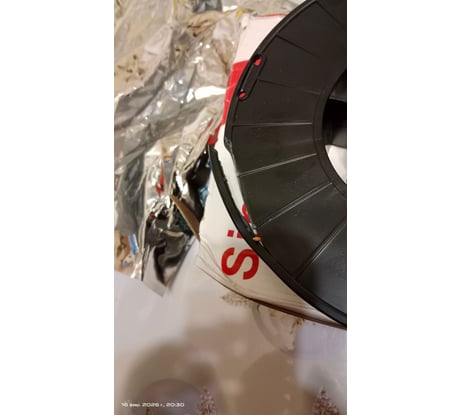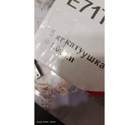 1.Коробка помята, разломана, внутренний вакуумный пакет порван. Коробка от проволоки 1мм с переклеенной наклейкой. 2. Катушка расколота. Будет цеплять проволоку при сварке. 3. Катушка не полная. До 5 кг не хватает 270 грамм !