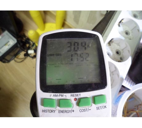 1. Хвостик в целые 32см.. После хвостиков аж по 6см, от которых хочется материться в голос, такой хвостик - как бальзам на душу. Можно хоть по-людски дотянуть до распайки, а не городить скрутки под открытым небом 2. Мощность соответствует. Понятное дело, что это мощность "брутто" со стороны сети, в диодах будет % на 20-25меньше. С прогревом мощность упала незначительно. 3. Температура снаружи радиатора +87.5гр, относительно терпимо.