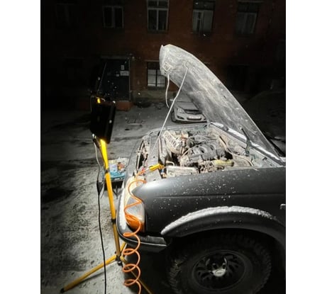 Этот прожектор стал отличным помощником при ночных работах. Яркость света впечатляет, а штатив позволяет установить его в любом месте без проблем