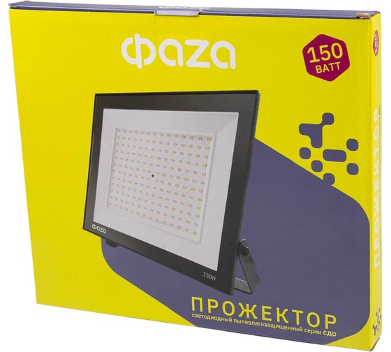 Прожектор светодиодный ФАZА СДО-20 150Вт 6500K IP65 230В BL ДО прозрачный закаленное стекло 5068452