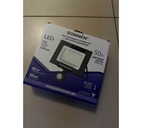 Отзывы о прожекторе светодиодном с датчиком движения SONNEN 50Вт, 6500К, 4000Лм, IP65, 187x176x51мм, черный, 238418