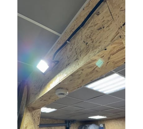 Устанавливал этот прожектор для подсветки строительной площадки. Световой поток мощный и равномерный, без темных пятен — вся территория освещена как днем