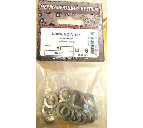 Отзывы о пружинной шайбе ЕВРОПАРТНЕР DIN 127, М8, нержав. сталь, 15 шт. G2 2728 1