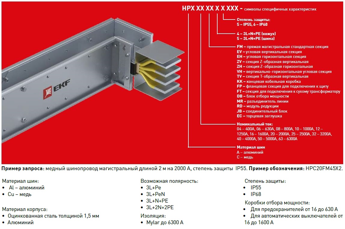 Расходные материалы для прямой нестандартной магистральной секции EKF 1000 А IP55 AL 3L+N+PE длина 0,5м-0,99м HPA10FM45X1