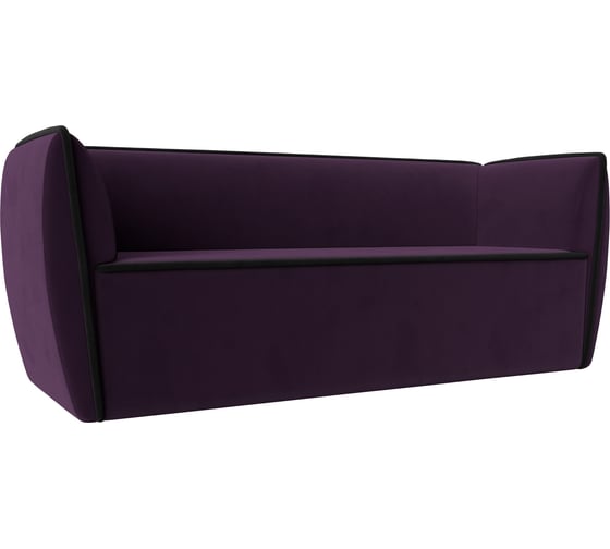 Прямой диван Лига диванов Бергамо 3-х местный полностью велюр фиолетовый, кант велюр черный 112095