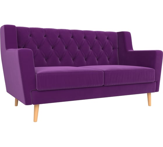 Прямой диван Лига диванов Брайтон 2 Люкс полностью микровельвет фиолетовый 108953