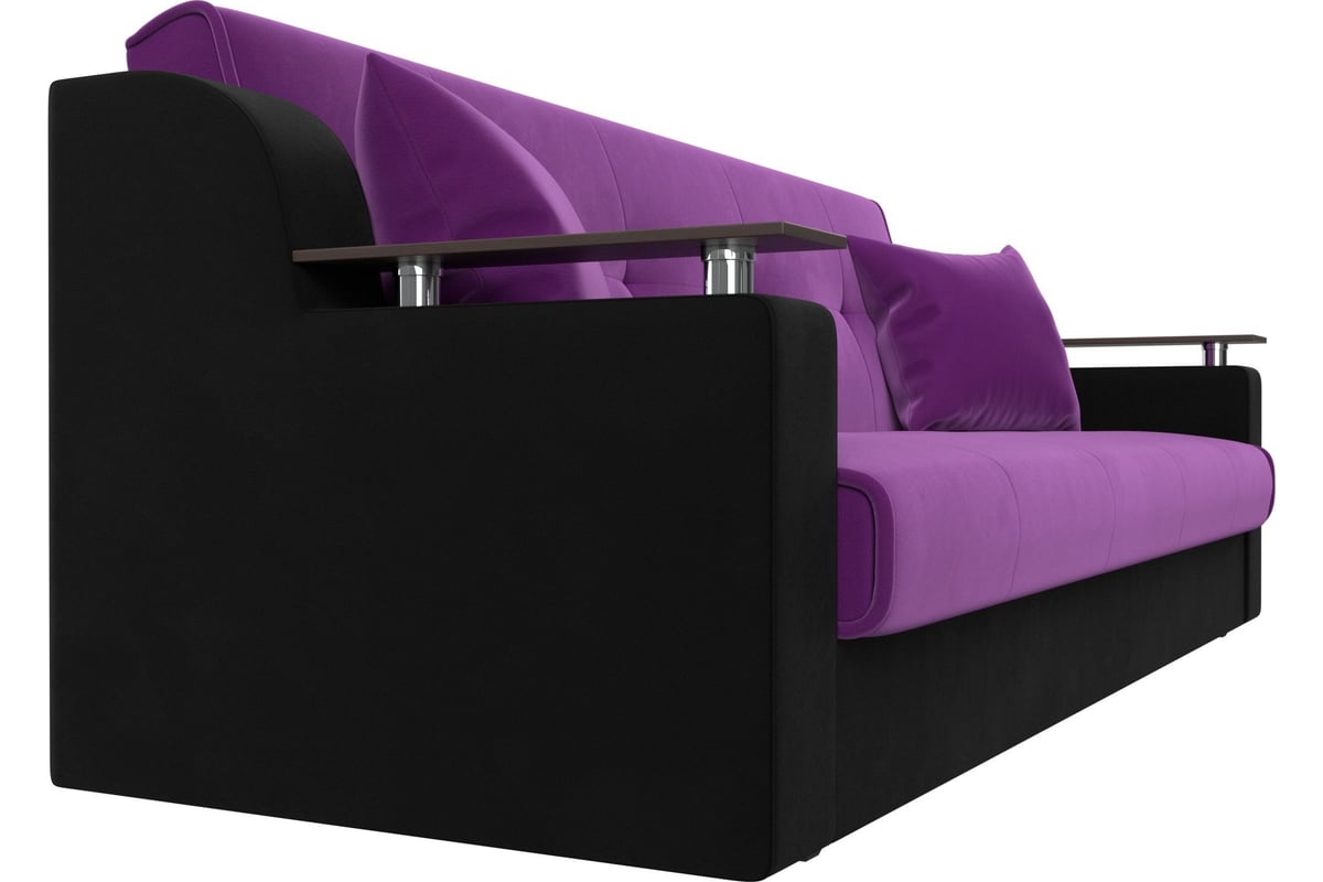 Прямой диван Лига диванов книжка Сенатор основа микровельвет фиолетовый, компаньон микровельвет черный 110123