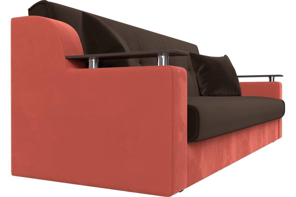 Прямой диван Лига диванов книжка Сенатор основа микровельвет коричневый, компаньон микровельвет коралловый 119565