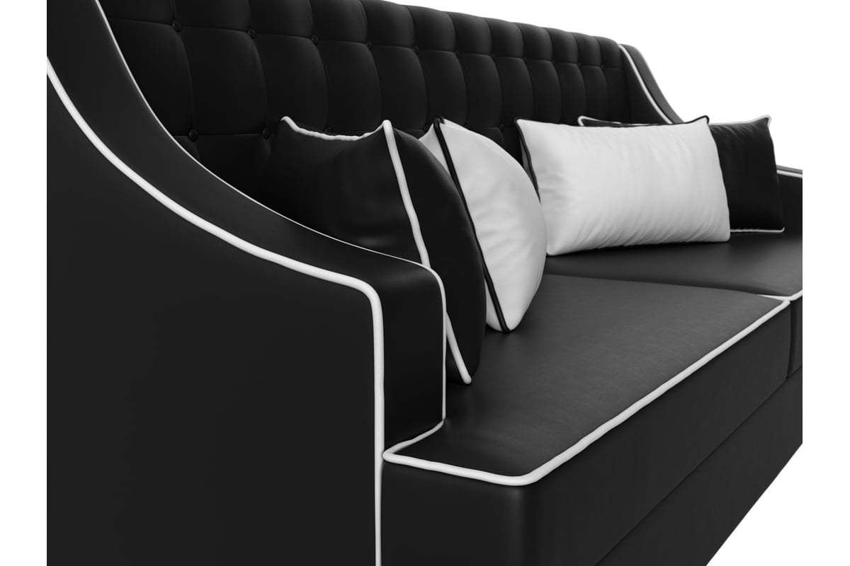 Прямой диван Лига диванов Марк полностью экокожа черная, кант экокожа белая, подушки экокожа ЧЕРН/БЕЛ 111922