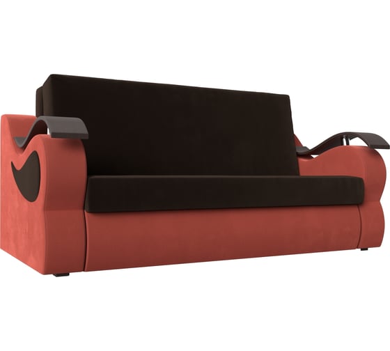 Прямой диван Лига диванов Меркурий 120 основа микровельвет коричневый, компаньон микровельвет коралловый 111383