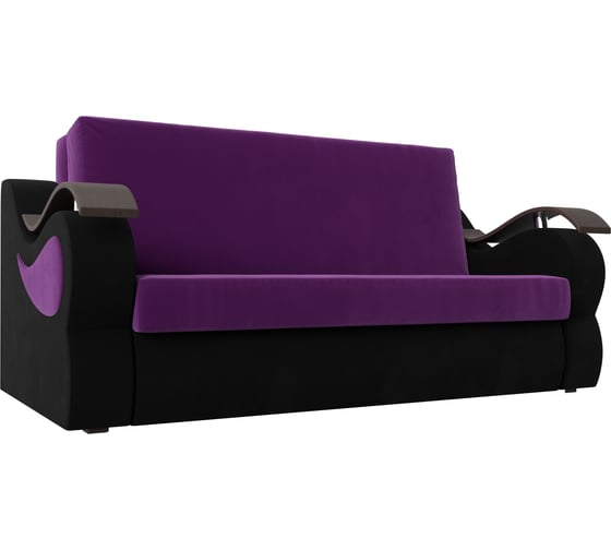 Прямой диван Лига диванов Меркурий 160 основа микровельвет фиолетовый, компаньон микровельвет черный 106386