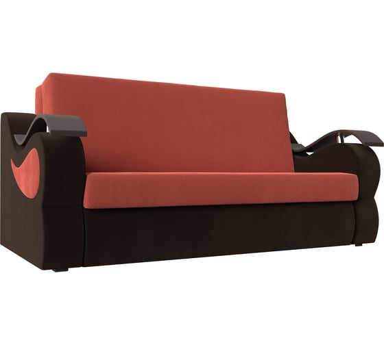 Прямой диван Лига диванов Меркурий 160 основа микровельвет коралловый, компаньон микровельвет коричневый 111406