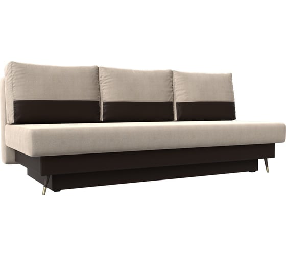 Прямой диван Лига диванов Самана основа рогожка бежевая, царга экокожа коричневая, подушки рогожка бежевая, вставка экокожа коричневая 118030
