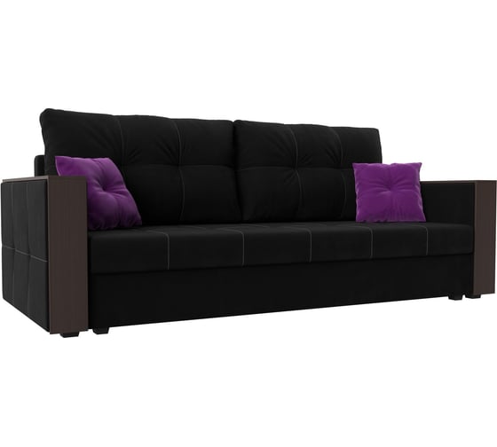 Прямой диван Лига диванов Валенсия Лайт полностью микровельвет черный, подушки микровельвет ФИО/черн 117226