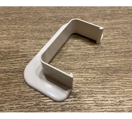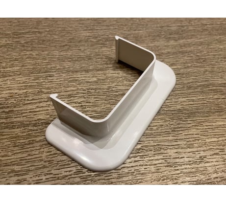 Глянцевый белый пластик. Качественное литьё без облоя. Прочный. Эстетично выглядит.