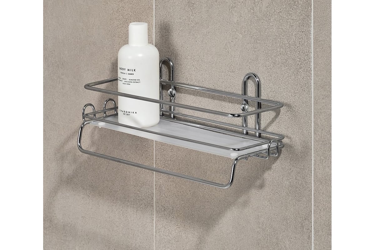 Одноярусная прямоугольная настенная полка из стали с гальваническим покрытием цвета хром. Размеры изделия: 35х11,6х12,5 см. Полка обладает надежным креплением на саморезы с декоративными колпачками в цвет изделия (идут в комплекте). Полка выдерживает нагрузку до 5 кг. Гальваническое покрытие обеспечивает повышенную стойкость к коррозии, благодаря чему полка прослужит дольше и сохранит первозданный вид. Высокий бортик препятствует выпадению содержимого. Увеличенная ширина полки обеспечивает хорошую вместительность. Пластиковое дно, идущее в комплекте, позволяет хранить на полке различные баночки, бутылочки, а также более мелкие ванные принадлежности. Полка оснащена тремя крючками и полотенцедержателем, которые можно использовать для полотенец, мочалок и других бытовых предметов. Производство: Россия.