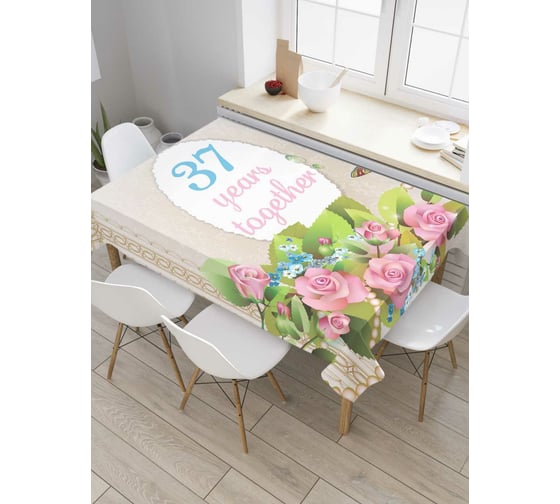Прямоугольная скатерть JOYARTY 37 лет вместе из сатена tc_7762_120x145