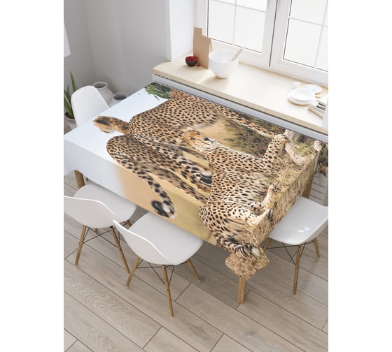 Прямоугольная скатерть JOYARTY Агрессия леопардов из сатена tc_21745_120x145