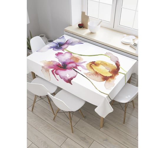 Прямоугольная скатерть JOYARTY Акварельные лепестки из сатена tc_28318_120x145