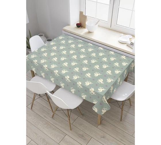 Прямоугольная скатерть JOYARTY Белая стая птиц из сатена tc_28255_120x145