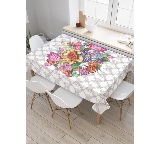 Прямоугольная скатерть JOYARTY Букет на решетке из сатена tc_5305_120x145