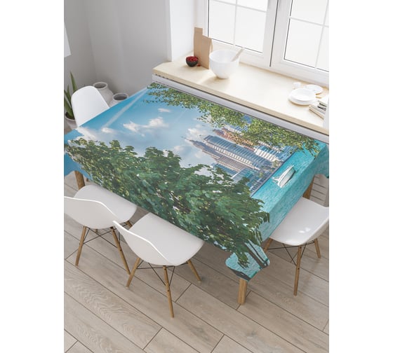 Прямоугольная скатерть JoyArty Детройт сквозь деревья из сатена tc_38097_120x145