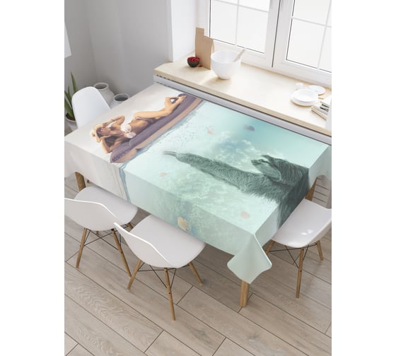 Прямоугольная скатерть JoyArty Девушка на море из сатена tc_5288_120x145