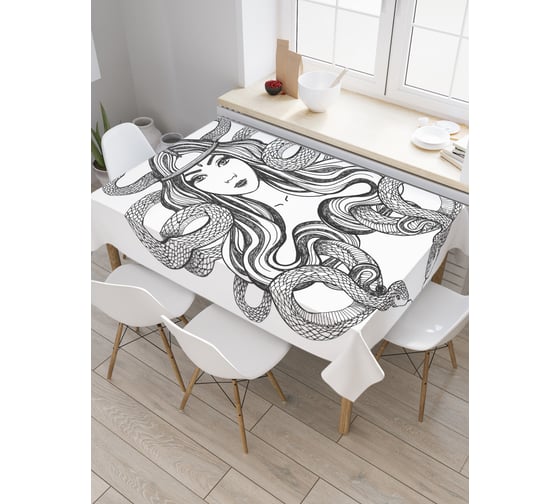 Прямоугольная скатерть JoyArty Девушка со змеями из сатена tc_19360_120x145