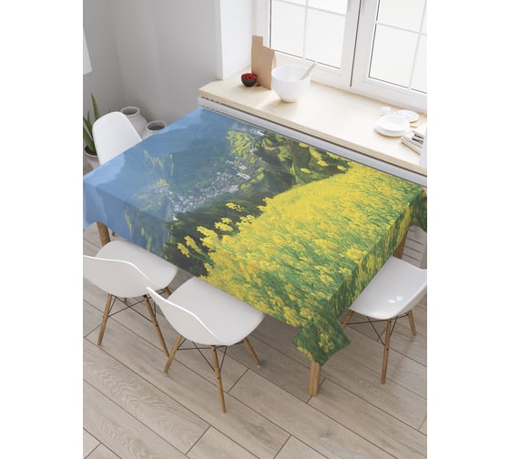 Прямоугольная скатерть JoyArty Долина за городом из сатена tc_20633_120x145