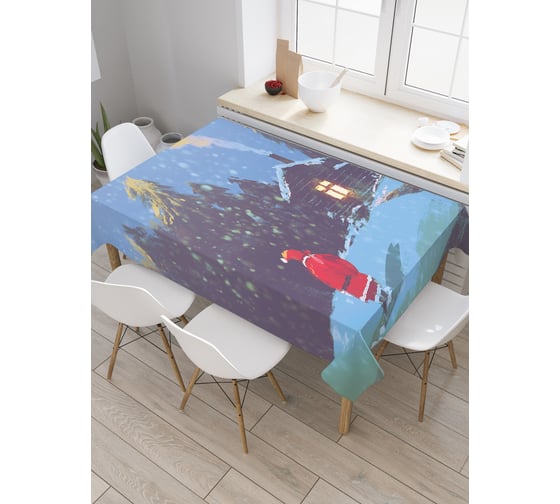 Прямоугольная скатерть JoyArty Дом санты из сатена tc_21787_120x145