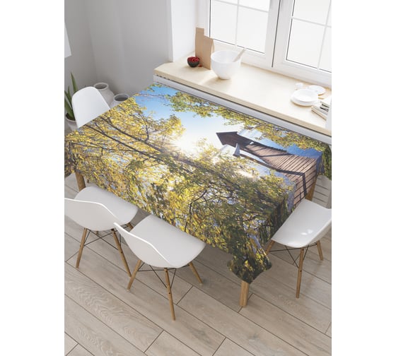 Прямоугольная скатерть JoyArty Домик на реке из сатена tc_19706_120x145