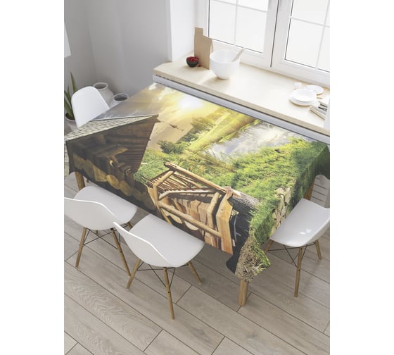 Прямоугольная скатерть JoyArty Домик у леса из сатена tc_31275_120x145