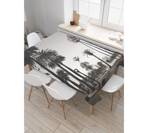 Прямоугольная скатерть JoyArty Дорога среди пальм из сатена tc_38168_120x145