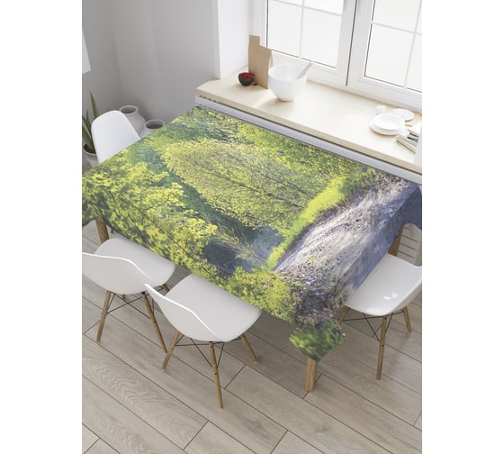 Прямоугольная скатерть JoyArty Дорога в лиственном лесу из сатена tc_27881_120x145