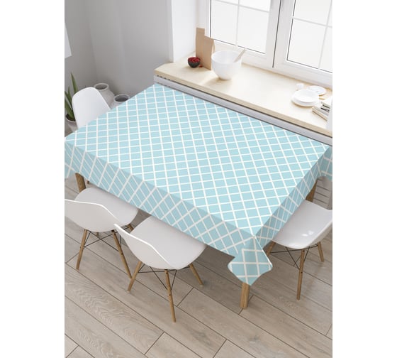 Прямоугольная скатерть JoyArty Голубые ромбы из сатена tc_30629_120x145