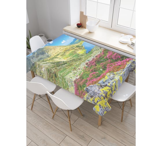 Прямоугольная скатерть JoyArty Горные цветы из сатена tc_19307_120x145
