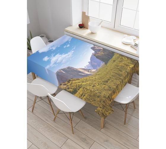 Прямоугольная скатерть JoyArty Горный пейзаж из сатена tc_19014_120x145