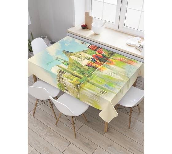 Прямоугольная скатерть JoyArty Город на острове из сатена tc_30303_120x145