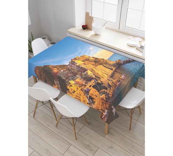 Прямоугольная скатерть JoyArty Город над морем из сатена tc_19846_120x145